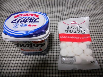 3分の1ほどを食べたら、マシュマロを投入してひと混ぜ。