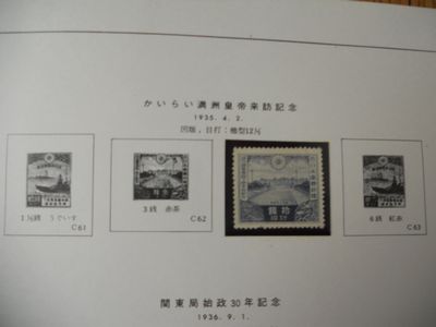 「かいらい満州皇帝来訪記念」切手、全4枚のうちの1枚。