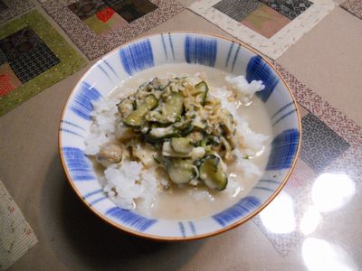 具材は豆腐とキュウリ、ちりめんじゃこ。