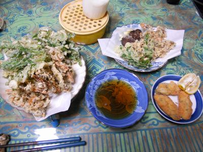 ・天ぷら(小エビかき揚げ、春菊、シイタケ)