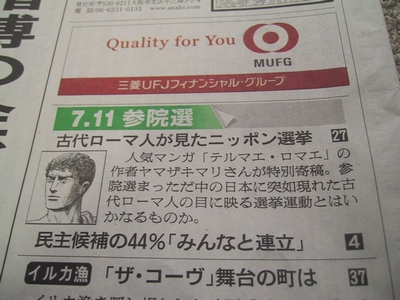 あー今日は日本xパラグアイ戦だなーと思いながら新聞に目を通していると