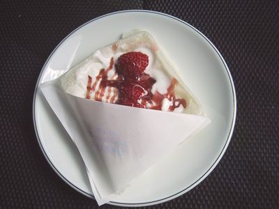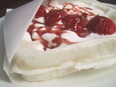 今回はイチゴを注文したので生クリーム、イチゴ、ストロベリーソース。