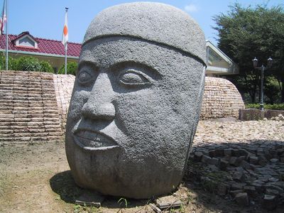 凱旋門をくぐり、インカ帝国のピラミッドとモアイ像を眺めながら