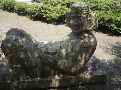 ここ、当時の人を再現した石像が置いてある。