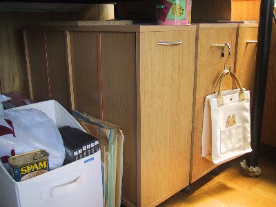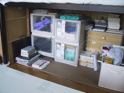 ワタシ専用高床式ベッドの下段が物置になってます。