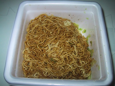 夜中に電子レンジのチーンって音で目を覚ますと可哀想ですし、インスタント麺で良しとしましょう。